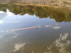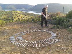 During the 2016 residency Aaron also made a land sculpture using rocks and wool to form a large profile of a bell in one of the meadows.